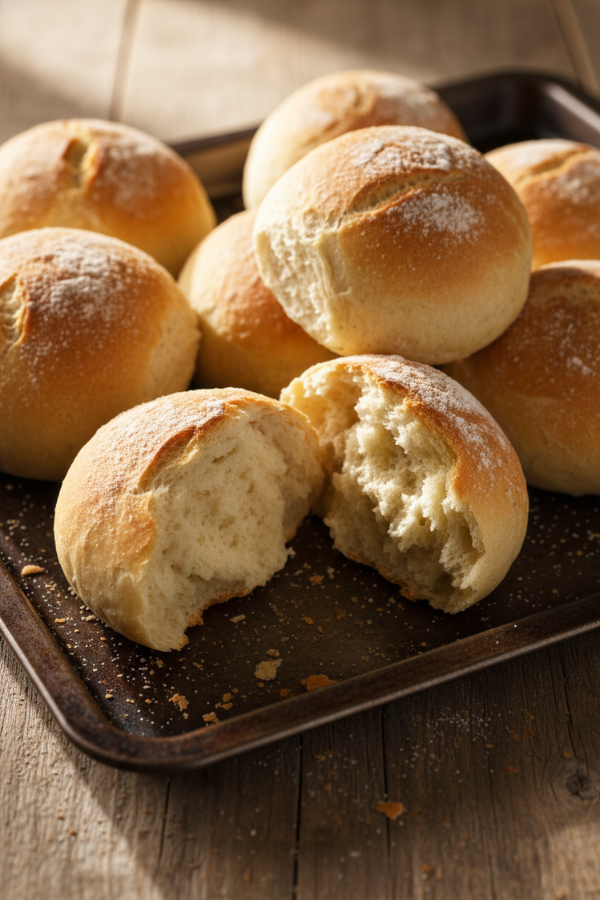 The texture is somewhere between classic dinner rolls, soft biscuits, and quick bread—not quite as airy as yeast bread, but surprisingly fluffy for such a simple recipe.