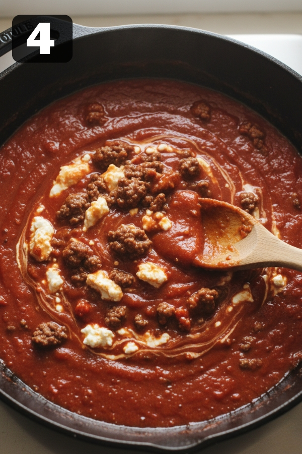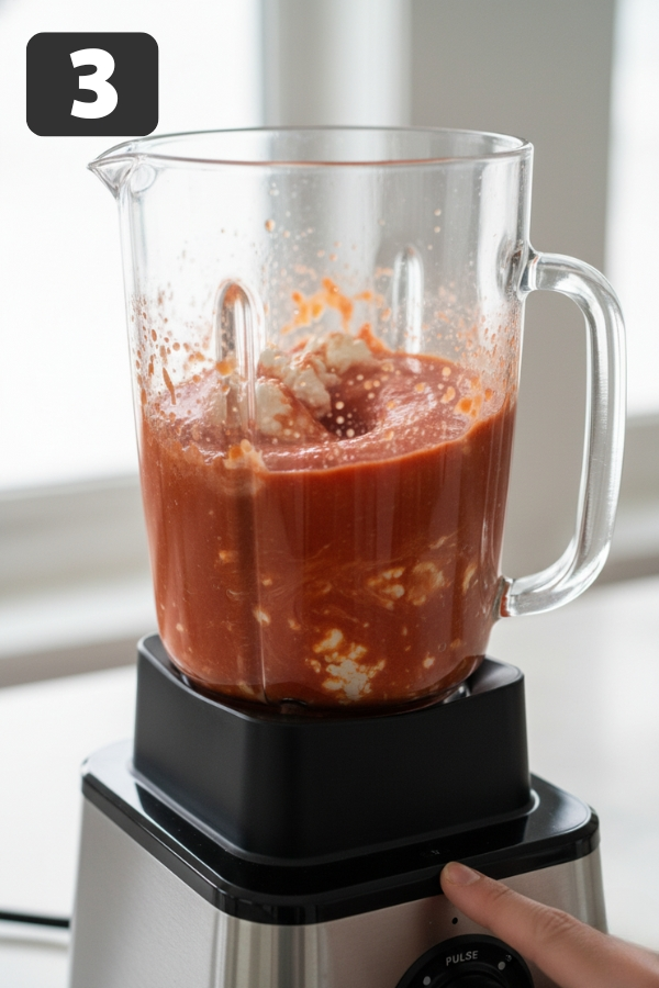 You shouldn’t see any curds or lumps — the texture should be similar to a creamy tomato soup. This step is what makes the final dish feel rich without being heavy.
