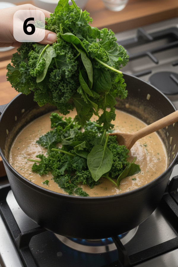 - How to add: Stir greens in gradually so they sink into the broth and soften evenly.