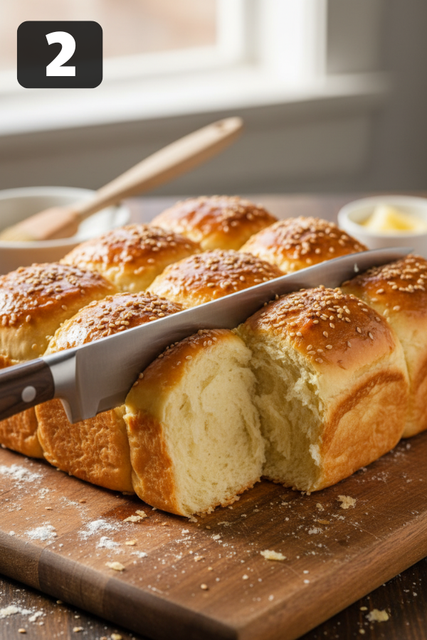 2. Slice the Slider Rolls Keep the rolls connected. Using a long knife, slice the entire sheet of rolls horizontally so you have one large bottom layer and one top layer. Place the bottom half into a 9×13 baking dish. A quick optional trick: toast the bottom buns lightly for a couple minutes if you like extra texture.
