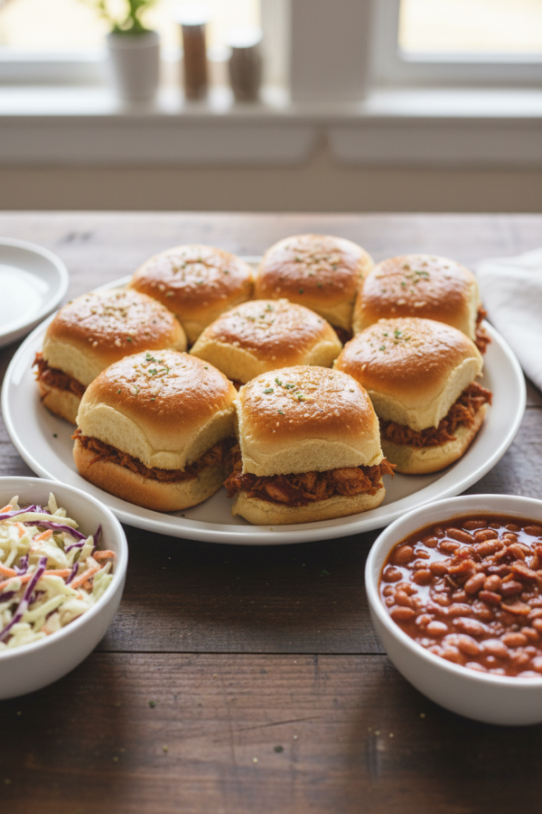 The real magic is how simple the recipe is. It relies on three ingredients most home cooks already love: rotisserie chicken, good BBQ sauce, and soft slider rolls.