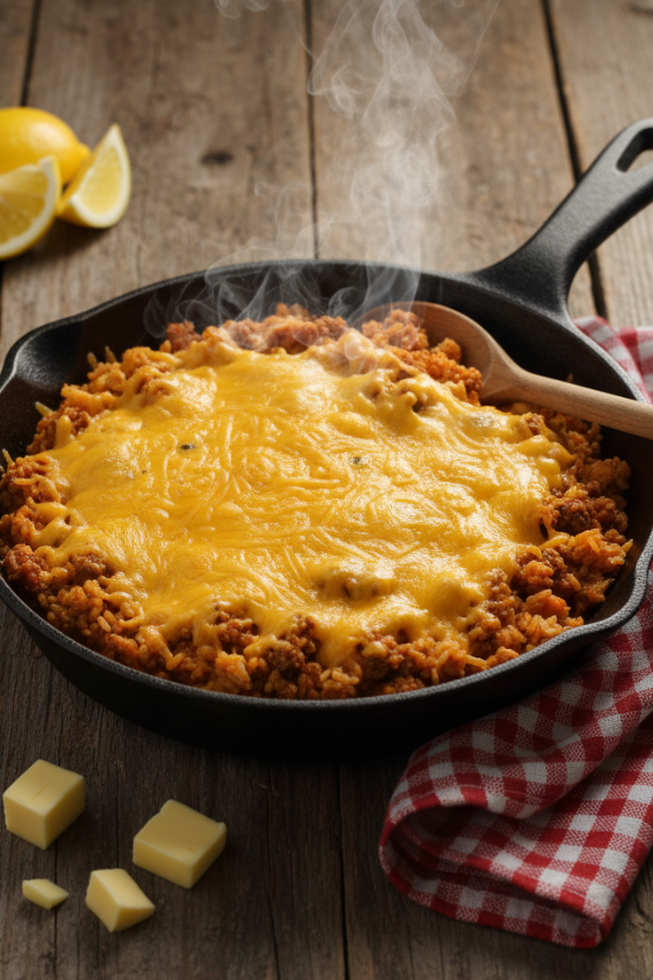 Let’s be honest—weeknight cooking isn’t about perfection. It’s about getting something warm, filling, and genuinely tasty on the table without turning your kitchen into a disaster zone. And that’s exactly why this Cheesy Taco Rice Skillet works.