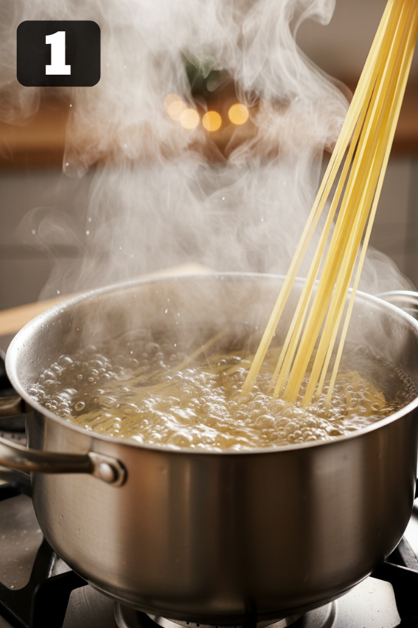 Bring a large pot of salted water to a boil. Cook the spaghetti until just al dente.