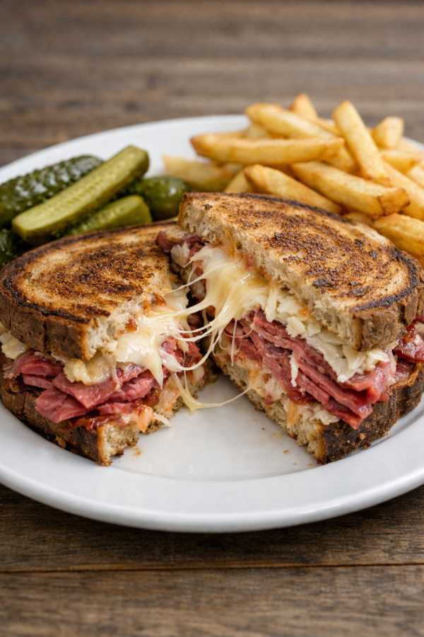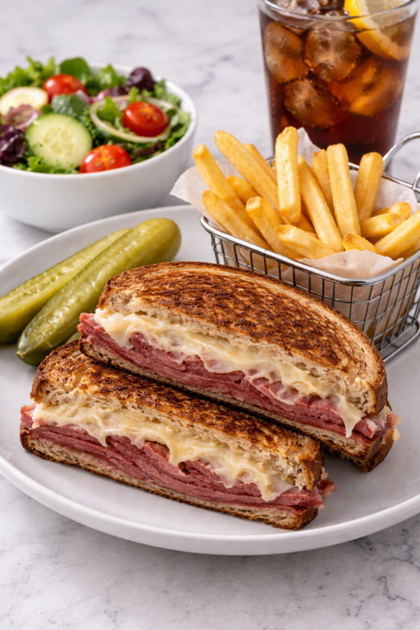 This classic Reuben sandwich recipe brings that experience home—without the hassle. With crispy rye bread, juicy corned beef, tangy sauerkraut, and creamy dressing, it tastes like something from a New York deli… but faster, cheaper, and easier to make.