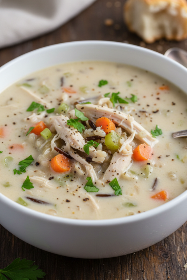 Second, it’s balanced comfort. Chicken and wild rice make it filling. Carrots, celery, and onion give it that classic “soup taste” we all grew up with. And the creamy finish pulls it together so it feels special, not like a rushed weekday meal.