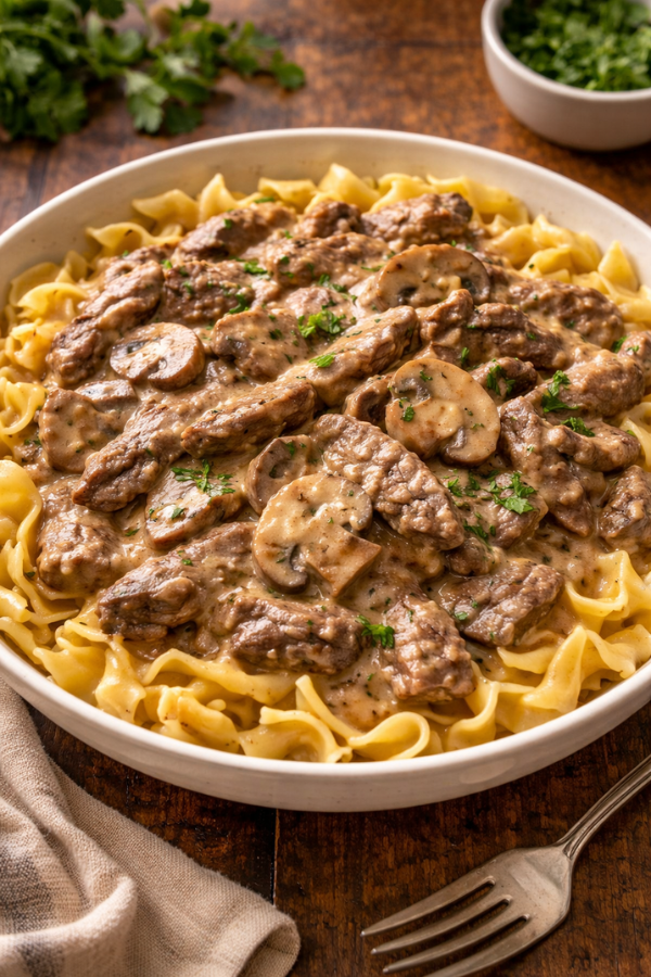 Instead of standing over the stove, prep everything in the morning. Then, by evening, your kitchen smells rich and comforting. Meanwhile, tender beef slowly transforms into a creamy mushroom sauce.