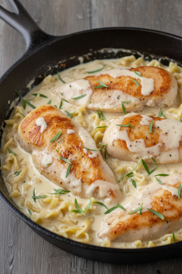 If you’re craving a dinner that feels a little special but still fits into a busy weeknight, Creamy Tarragon Chicken is a solid go-to. It’s one skillet, a short ingredient list, and a sauce that makes everything on the plate taste better—no extra effort required. Once you’ve made it once, you’ll start riffing naturally: thighs instead of breasts, extra lemon when you want it brighter, noodles when you need comfort, a crisp salad when you want it lighter. And that’s the real win—this recipe doesn’t just feed you tonight; it gives you an easy, reliable pattern you can come back to whenever you need a cozy meal with minimal cleanup.