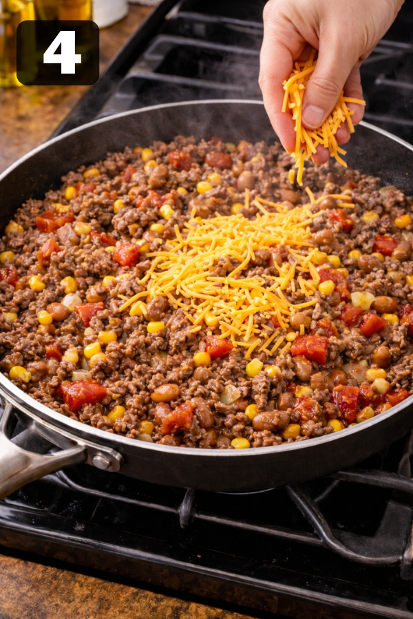 Sprinkle shredded cheese over the beef mixture.