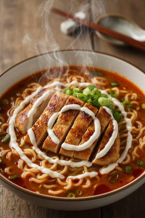 You know that moment when you want takeout… but you also want to feel good after dinner? This Fiery Chicken Ramen with Creamy Garlic Sauce hits that sweet spot. It’s spicy, cozy, and creamy in the same spoonful, with simple ingredients and minimal cleanup. And yes—this is the kind of meal you can pull off on a Tuesday.
