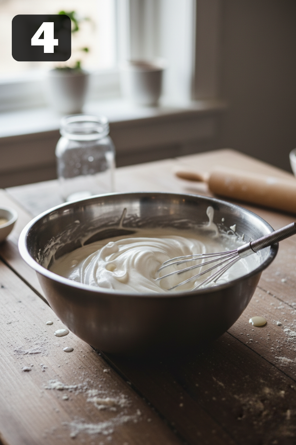 - Step 4 – Whip the Egg WhitesMeanwhile, beat the egg whites until stiff peaks form. This usually takes about 3–5 minutes. At this stage, the peaks should hold their shape firmly.