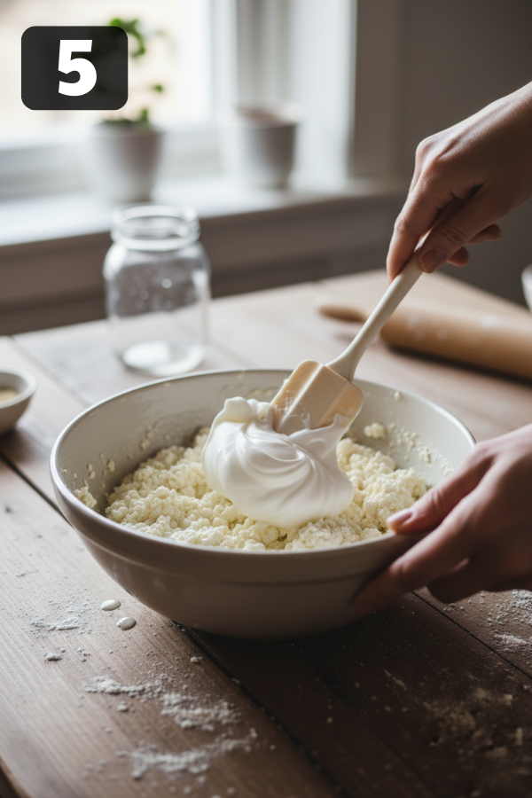 - Step 5 – Fold GentlyThen, gently fold the whipped egg whites into the cottage cheese mixture. Instead of mixing aggressively, use slow, careful motions to keep the air intact.