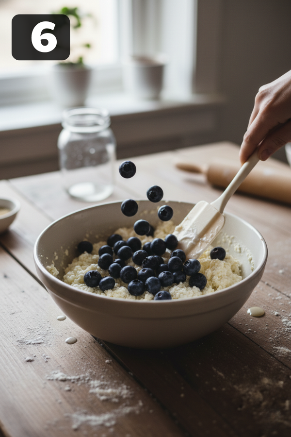 - Step 6 – Add BlueberriesOnce combined, fold in the blueberries. For better results, lightly coat them with a bit of starch so they do not sink.