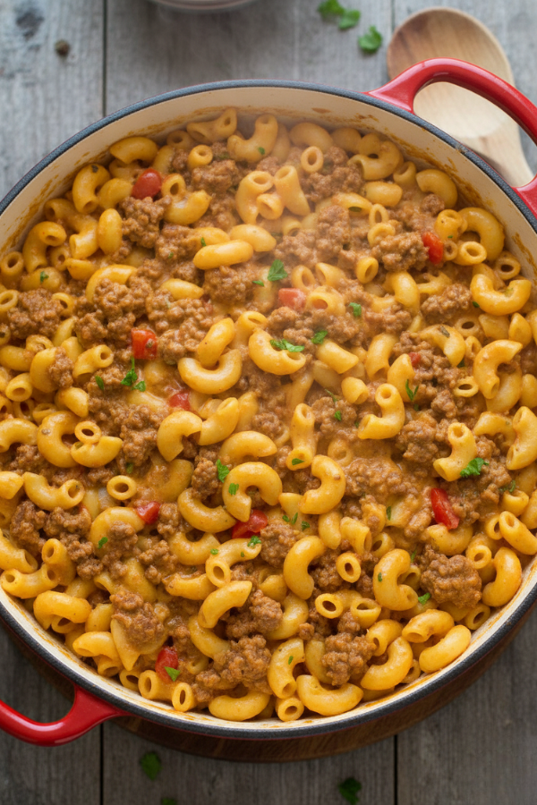 Most homemade meals take longer than you expect. This doesn’t. Browning the beef takes a few minutes, the pasta cooks right in the sauce, and the cheese melts instantly. You can comfortably get this on the table in 25–30 minutes.