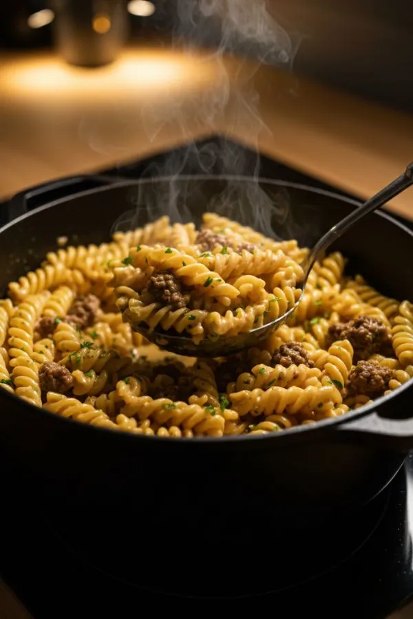 The flavor is straightforward: buttery garlic, a gentle creaminess, and seasoned ground beef. It’s mild enough for kids but flexible enough for spice lovers. And because it leans on pantry staples, you can make it even when your fridge looks a bit empty.