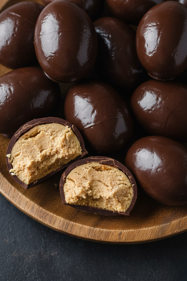 There’s something nostalgic about peanut butter and chocolate together—it just works. These Easter eggs take that classic combo and give it a homemade twist. The center is smooth and slightly dense, almost like a softer version of a candy shop favorite. The outer chocolate layer adds just enough snap to make each bite satisfying.