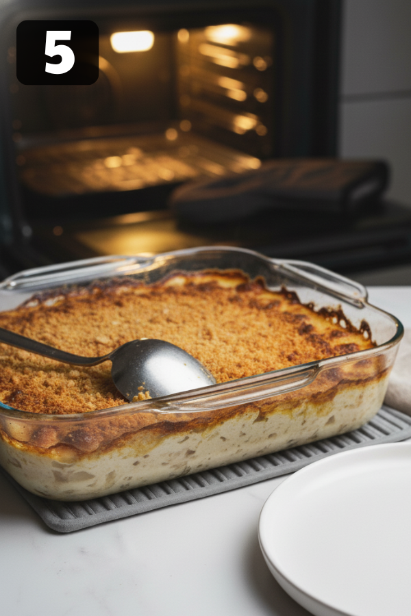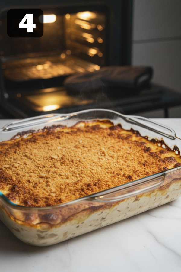 - Step 4 – Bake Until GoldenBake uncovered for 20–25 minutesLook for:Golden brown toppingBubbling edges