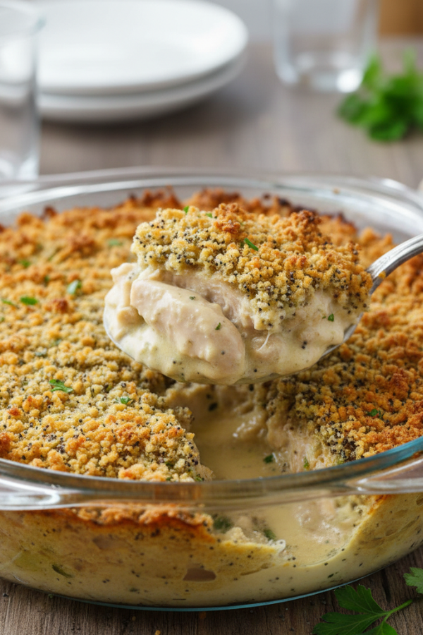This Poppy Seed Chicken Casserole is creamy, comforting, and incredibly easy to put together with pantry ingredients.