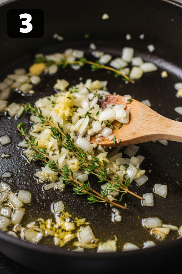 Step 3: Sauté Aromatics (3–5 Minutes)