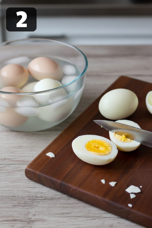 - Cool, Peel, And Slice (The “Don’t Skip” Step) Let eggs sit in the ice bath until fully cool to the touch. Peel gently. If you’re struggling, peel under cool running water to help slip off shell bits. Slice each egg lengthwise with a clean, sharp knife. If you want picture-perfect whites, slow down here. Torn whites still taste fine, but they look messy on a platter and don’t hold filling as neatly.