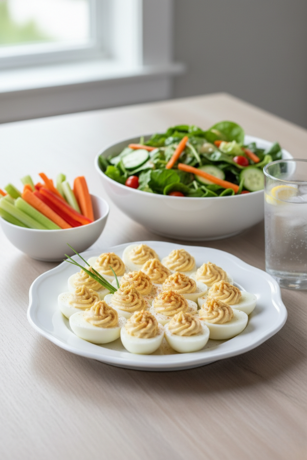 Deviled eggs have a funny way of making a day feel more put-together. You can be wearing leggings, answering emails, and still set down a platter that looks like you planned ahead.
