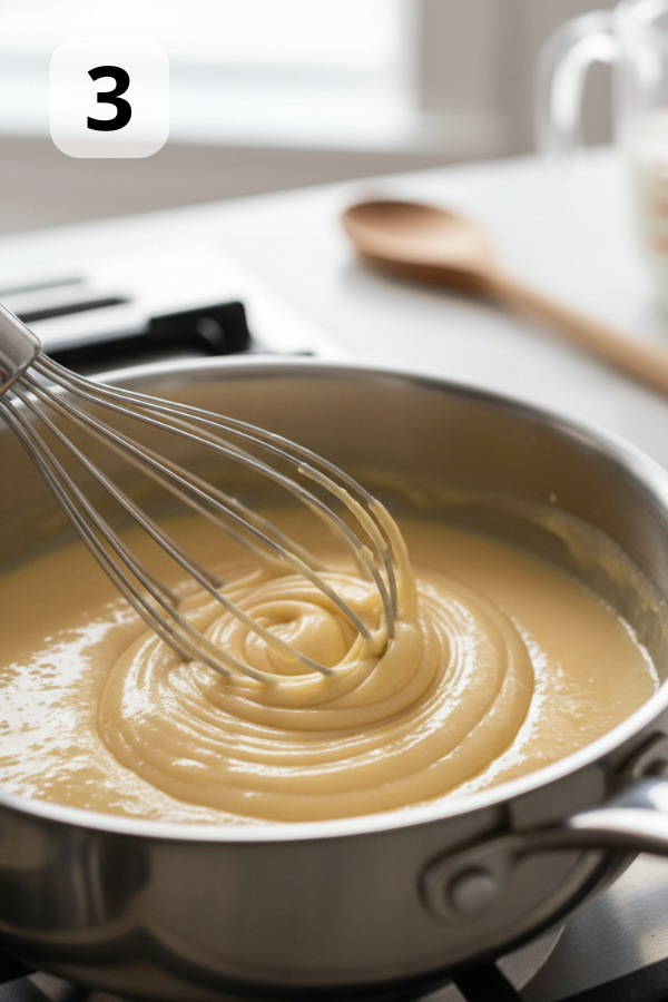 - Stir until it thickens slightly—think “creamy soup,” not “pudding”