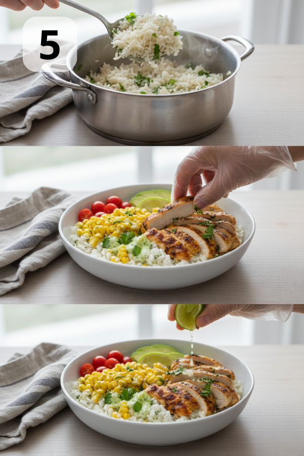 Step 5 – Build Your Cilantro Lime Chicken & Rice Bowls
