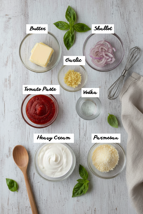 • Simple ingredients: Butter, tomato paste, cream, garlic, vodka, cheese—most are pantry or fridge staples.