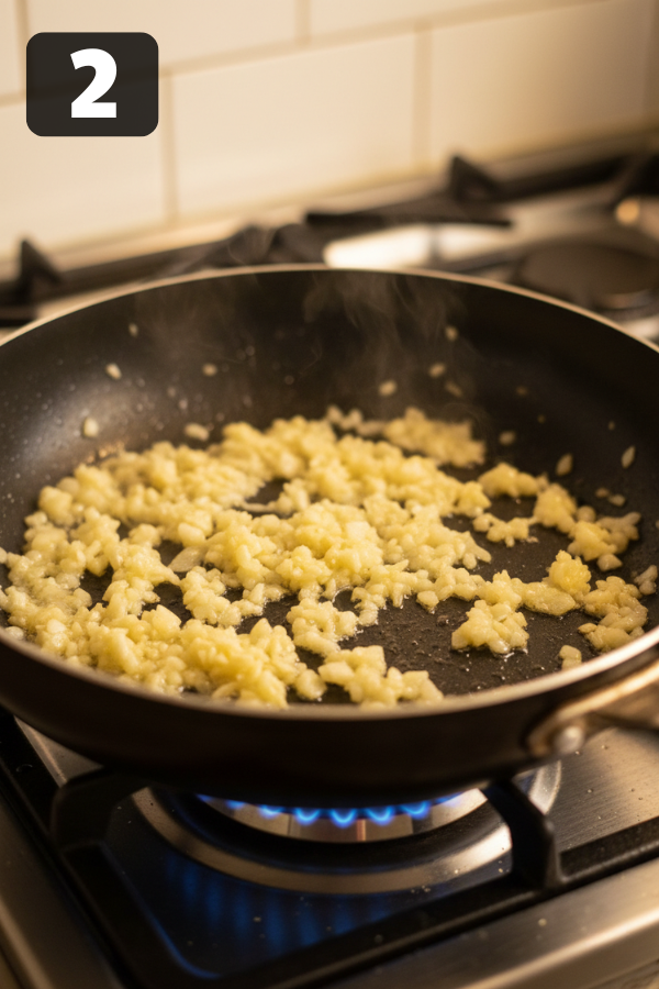 • Stir in the minced garlic and cook for another 30–60 seconds, just until fragrant.