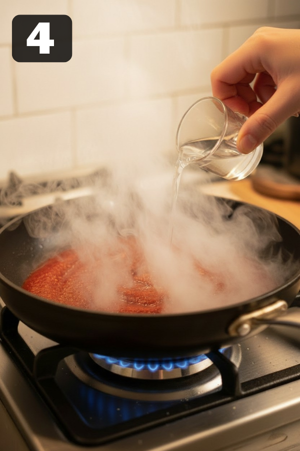 4. Add The Vodka And Simmer Briefly This part can smell a little strong at first—don’t worry. Pour in the vodka (¼ to ½ cup, depending on how bold you like the flavor). Stir well, scraping up any browned bits from the bottom of the pan. Let it simmer for 2–3 minutes, still on medium heat, until the sharp alcohol smell softens and the mixture thickens slightly.