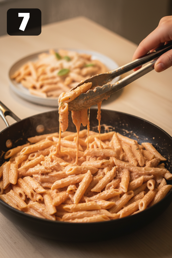 7. Toss With Hot Pasta And Serve While the sauce simmers, boil your pasta in well-salted water. Penne, rigatoni, or any ridged shape works great. Reserve ½ cup of the starchy pasta water. Combine the drained pasta and sauce directly in the skillet. Add small splashes of pasta water until every piece of pasta is coated in a silky layer of sauce. Finish with extra Parmesan and chopped basil or parsley on top. You’ve just made Easy Creamy Homemade Vodka Sauce that would honestly not look out of place in a nice little neighborhood restaurant.