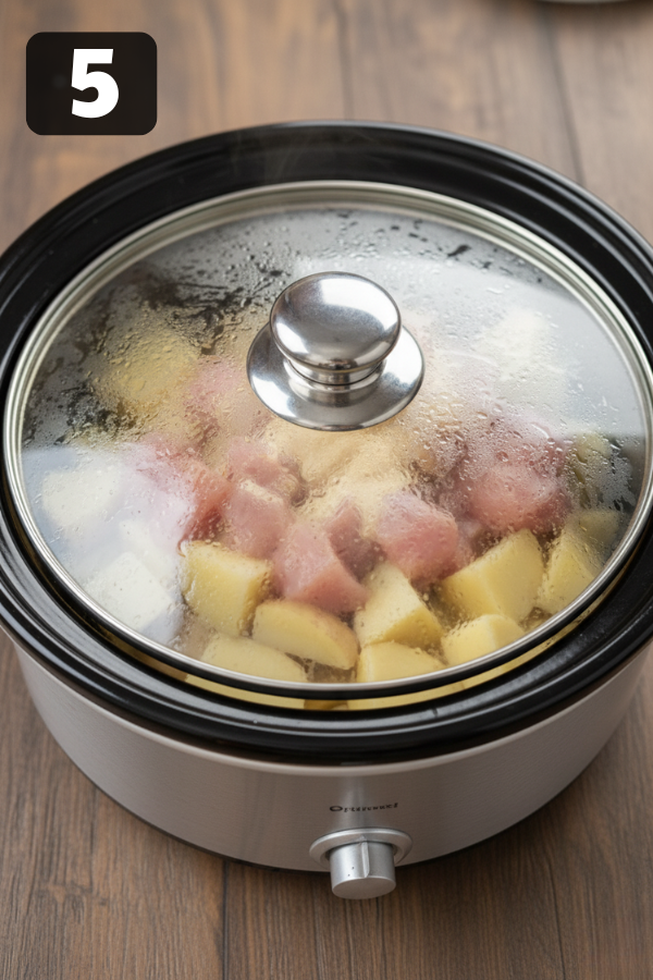 5. Step 5 – Cook Low and Slow (or High and Fast) Now the easy part: Cook on LOW for 4–6 hours, or Cook on HIGH for 2½–3 hours You’re aiming for: Chicken at 165°F (juicy but fully cooked) Potatoes fork-tender but not falling apart Every slow cooker runs a bit different. The first time you make this, check around the 4-hour mark on LOW or the 2½-hour mark on HIGH.