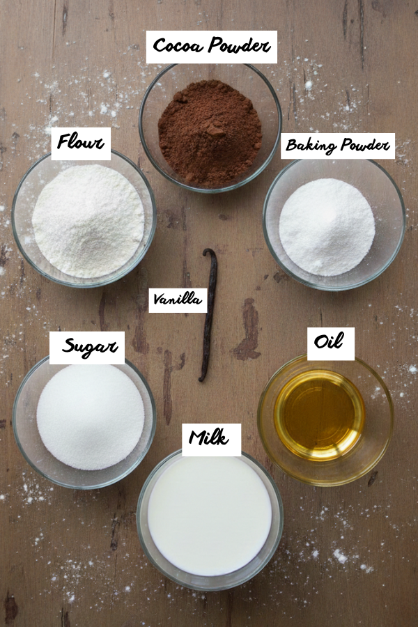• It uses ingredients most U.S. home cooks already have on hand: flour, cocoa, sugar, milk, oil or butter, baking powder, salt, vanilla.