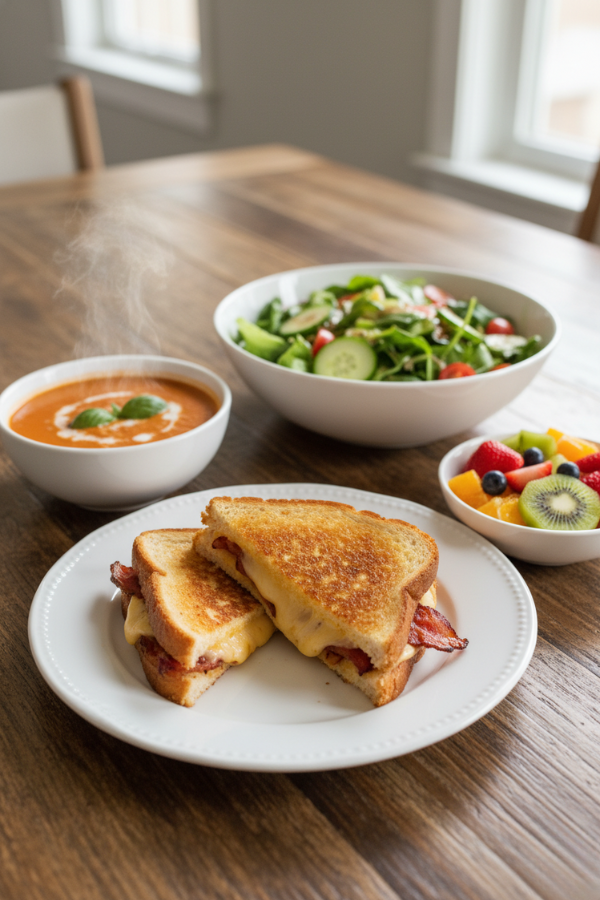 - Apple slices, grapes, or a simple fruit salad balance the richness surprisingly well.