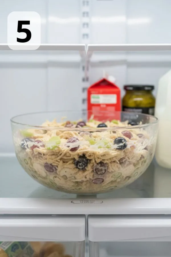 - Step 5: Chill: Let the salad rest in the fridge for 10 minutes. This tiny pause helps the yogurt meld with the chicken and lets the flavors round out. But if you’re already starving? Serve it right away. It’ll still be delicious — just a little “younger” tasting.