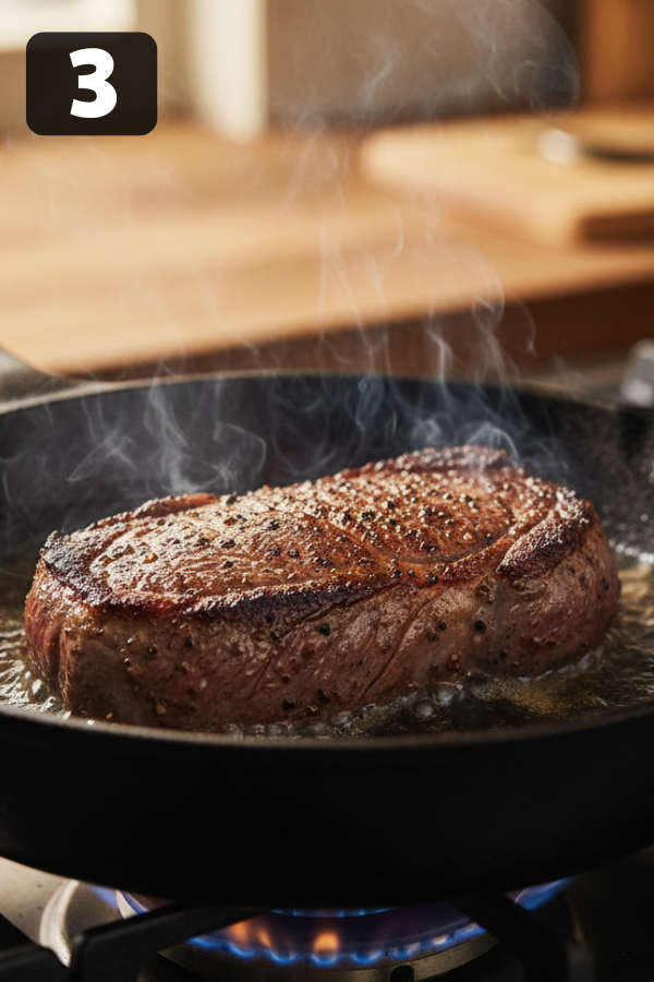 Transfer the steak to a cutting board, tent with foil, and let it rest 5–10 minutes. That pause keeps the juices inside instead of all over your board.