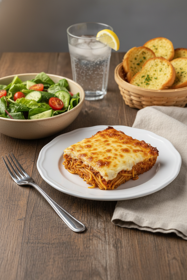Million Dollar Spaghetti Casserole is one of those recipes that quietly earns a permanent spot in your rotation. It’s comforting like lasagna, simple like baked pasta, and practical enough for a busy Wednesday when everyone’s hungry at a different time. You cook once, eat twice (or more), and no one complains about leftovers—if anything, they look forward to them.
