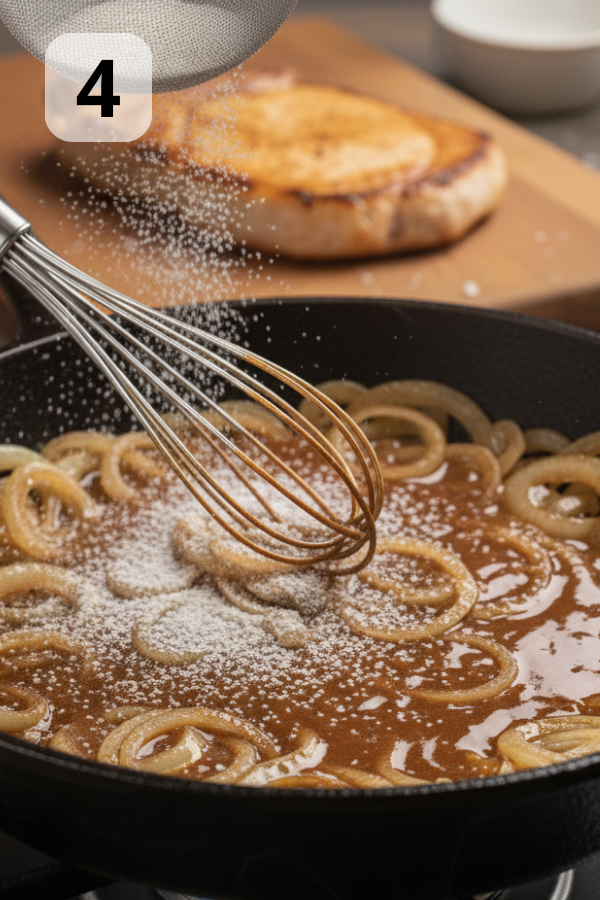 Step 4: Make The Onion Gravy (3–5 minutes)