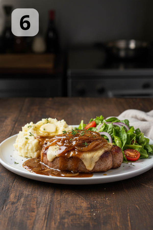 This is one of those recipes that feels a little fancy, even though it’s basically: onions, pork, gravy, cheese. And honestly, that’s the magic—simple moves that stack into something comforting and memorable. If you try it, don’t be surprised if someone asks, “Wait… you made this on a weeknight?”