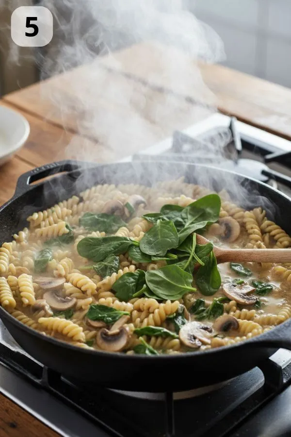 - Make-ahead: Cook mushrooms and sauce base a day before; add pasta/spinach fresh when serving.
