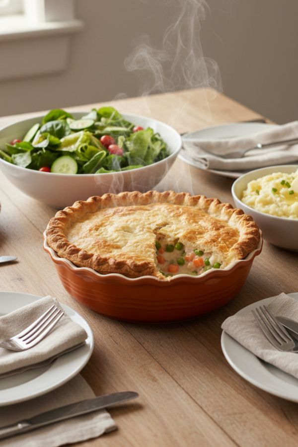 - A crisp salad with a tangy vinaigrette is the perfect pairing for the creamy pot pie.