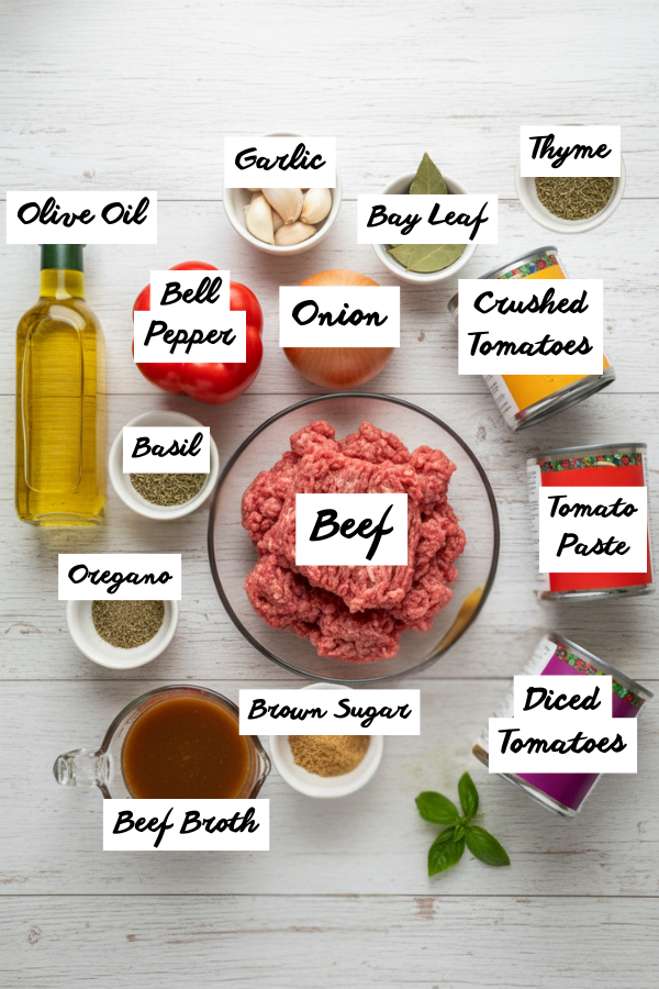 - The Meat: 2 lbs Lean Ground Beef (you can also use a 50/50 mix of beef and Italian sausage for extra zing).