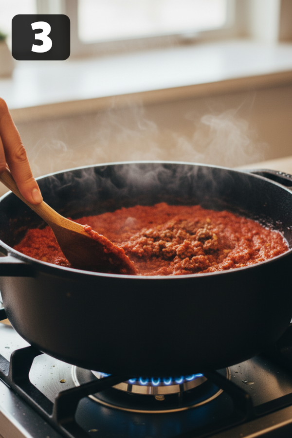 In a large Dutch oven or pot, heat a tablespoon of olive oil over medium-high heat. Add the ground beef and cook until no longer pink. Drain the excess grease—your heart (and the sauce texture) will thank you.