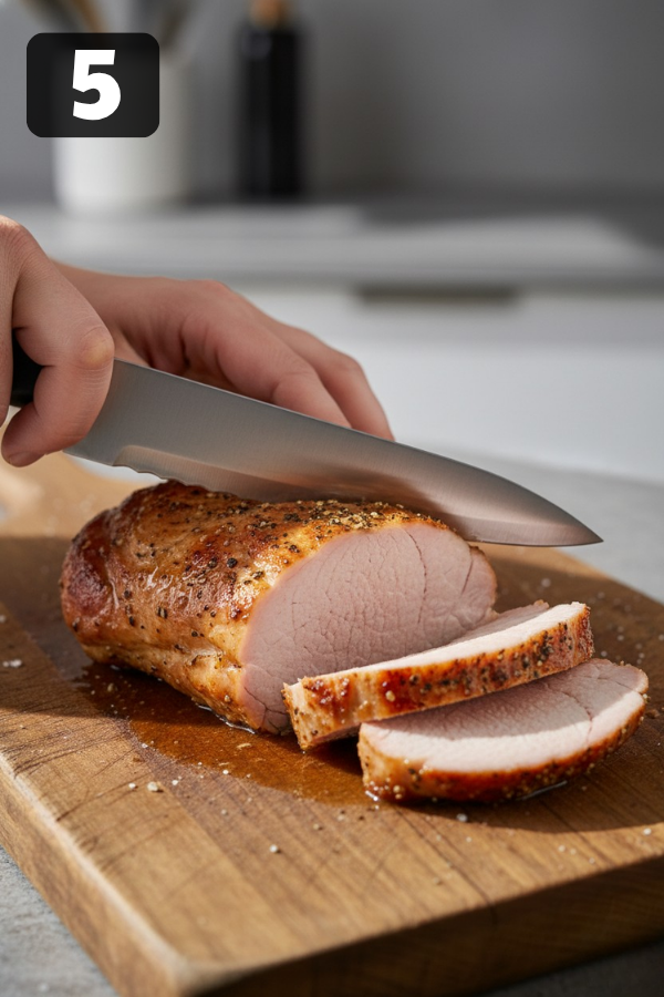 Let the pork rest for about 5–10 minutes before slicing.