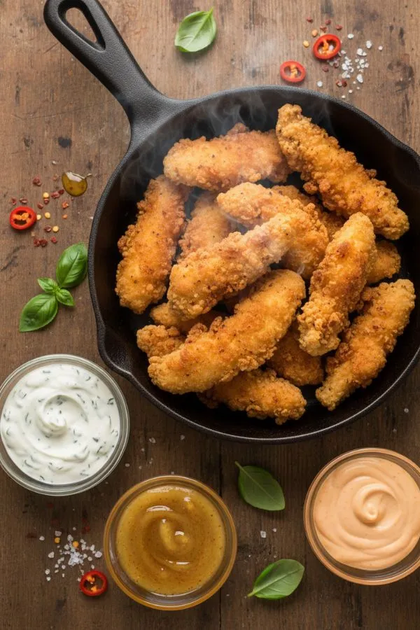 Ranch, spicy mayo, honey mustard, or a drizzle of hot honey all pair beautifully with the crunchy, spicy coating.