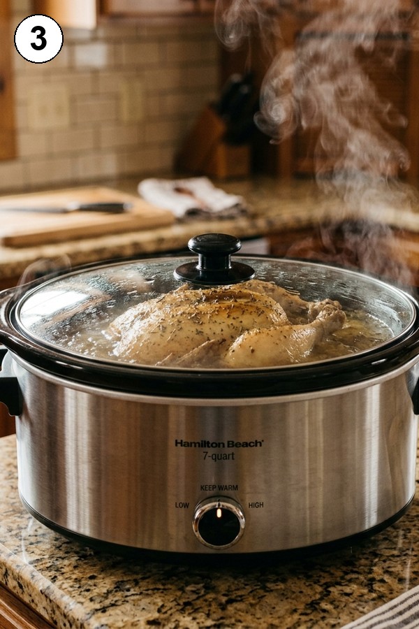 Cover and cook on Low for 6 hours (or High for 3 hours) until internal temp reaches 165F (74C).